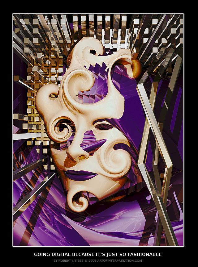 Blender is a 3D animation program (open source software). It is used for modeling, texturing, UV unwrapping, kinning, animating, rigging, water simulations, rendering, particle and other simulations, non-linear editing, compositing, and creating interactive 3D applications. This two videos were created with the Blender ‘Array’ software. Blender also allows the rendering of fantastic images like this one by digital artist Robert J. Tiess: